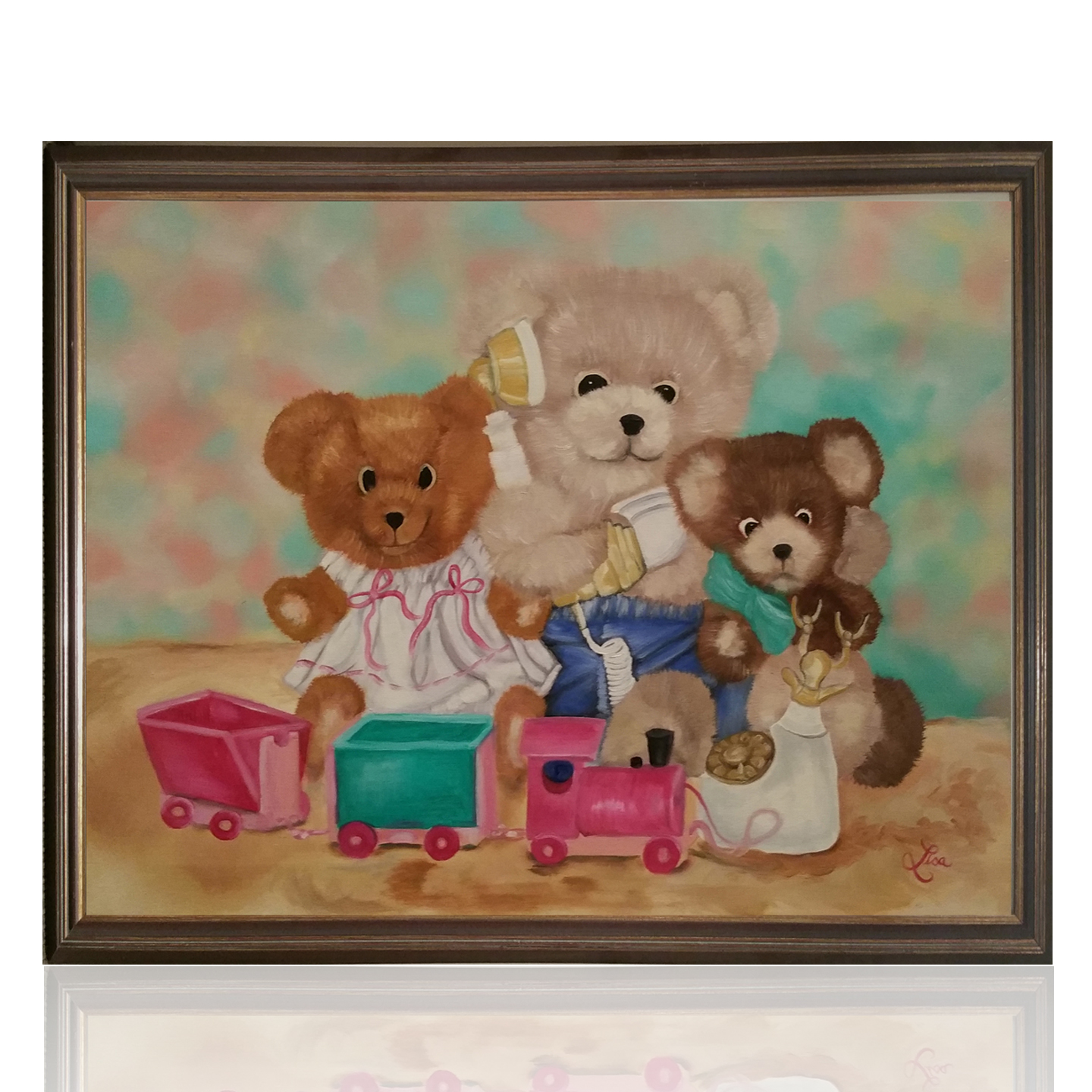 TEDDY BEAR TRIO, ORIGINAL OIL PAINTING